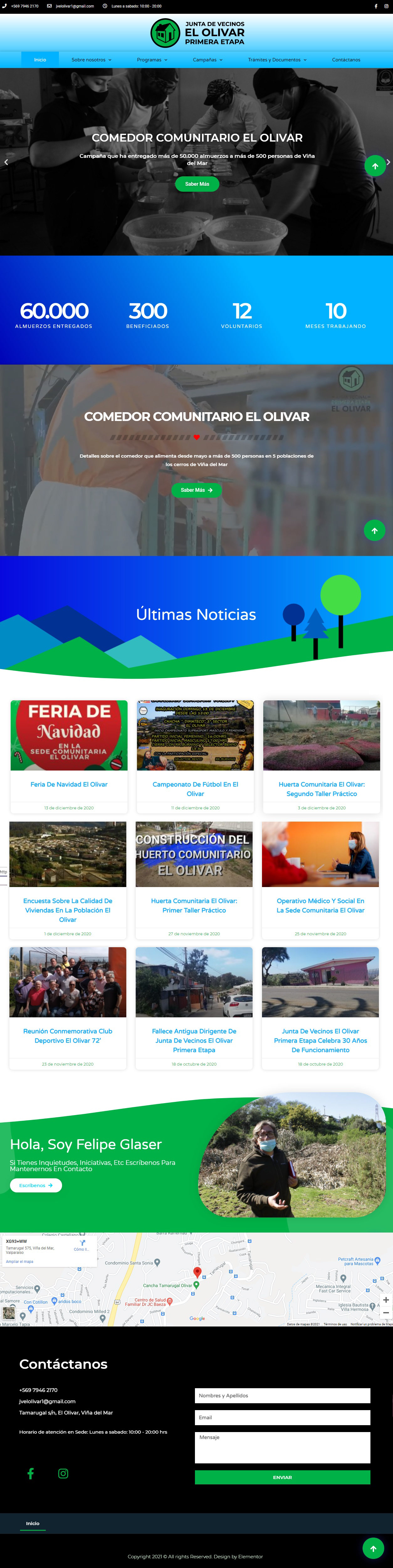 Este sitio fue desarrollado para la Junta de Vecinos El Olivar Primera Etapa, en Viña del Mar el año 2020, como una forma de apoyar a la comunidad en su proceso de modernizar las formas de comunicación con sus propios vecinos.
